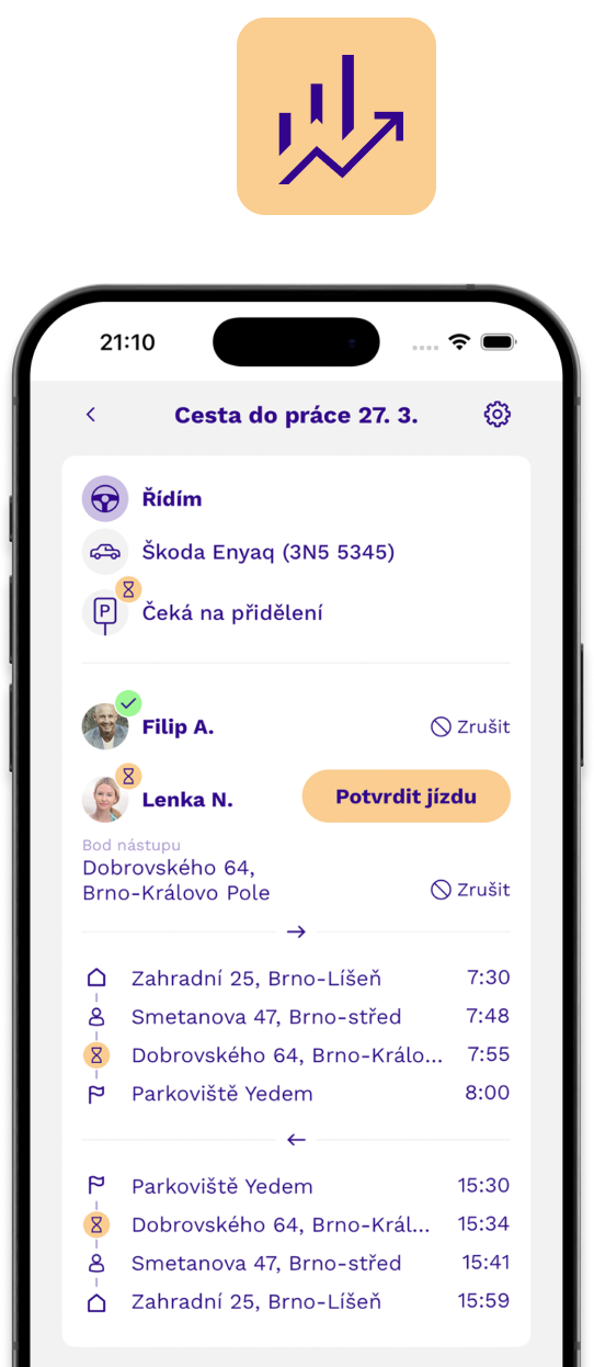 Vyčíslíme vám, jestli využíváte parkovací místa dostatečně nebo kolik CO₂ produkujete. Díky přesným datům optimalizujete vše kolem parkování a dojíždění.